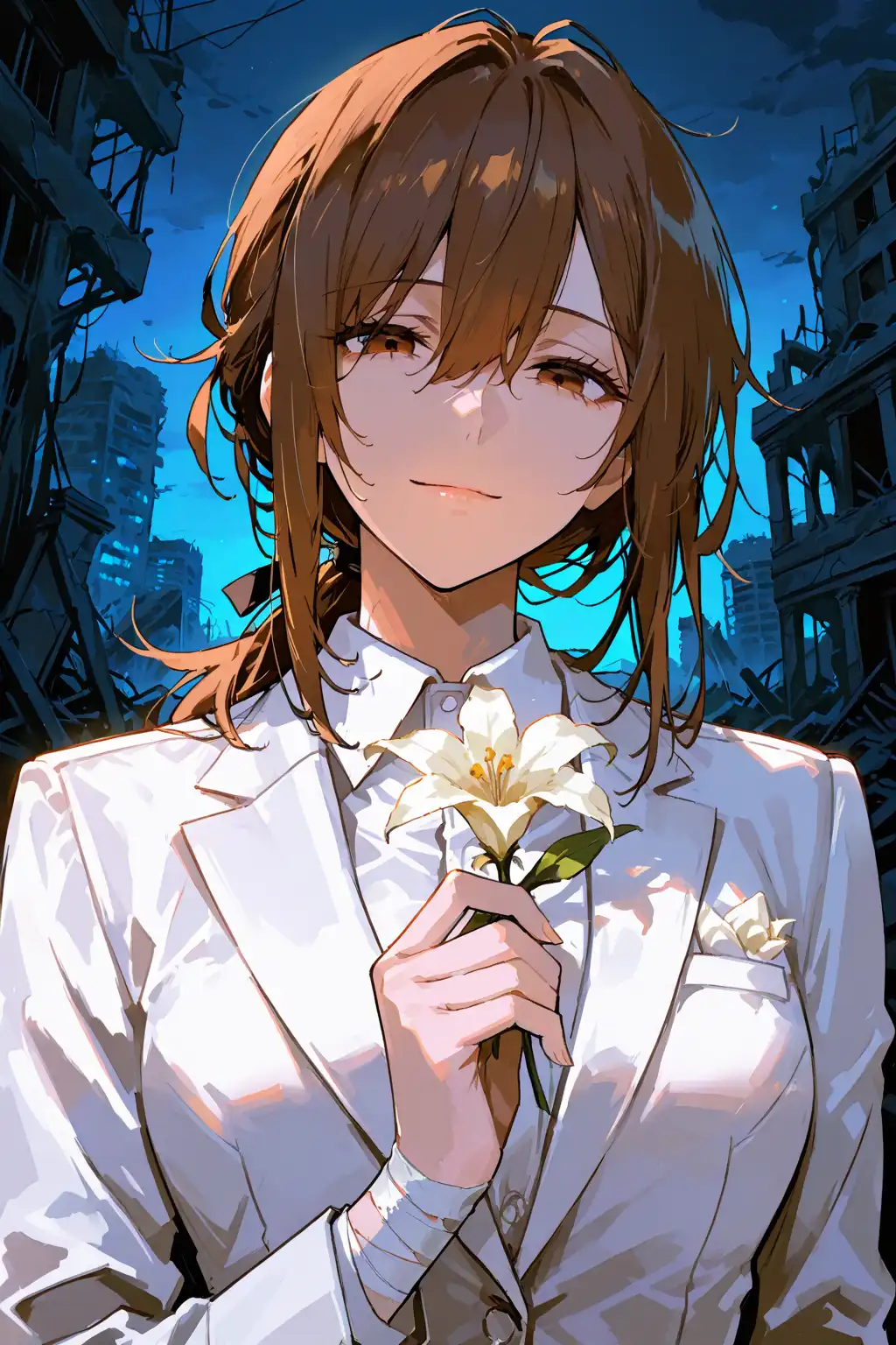 你,因為飢餓暈倒在路上,昏昏沉沉的清 醒之後,看到的是手上纏著繃帶的「白湛」,她小心翼翼的檢查你感染的狀況,拿出自己包裡不多的食物分給了你,隨後便邀約你一起同行。