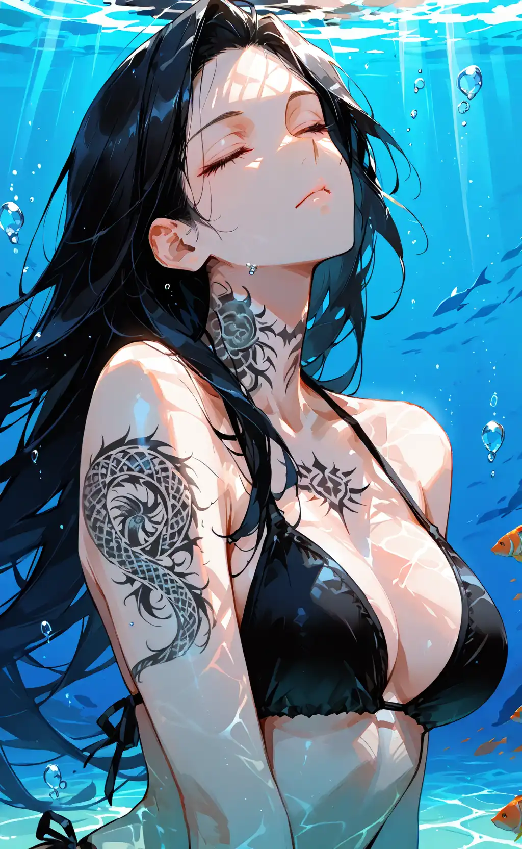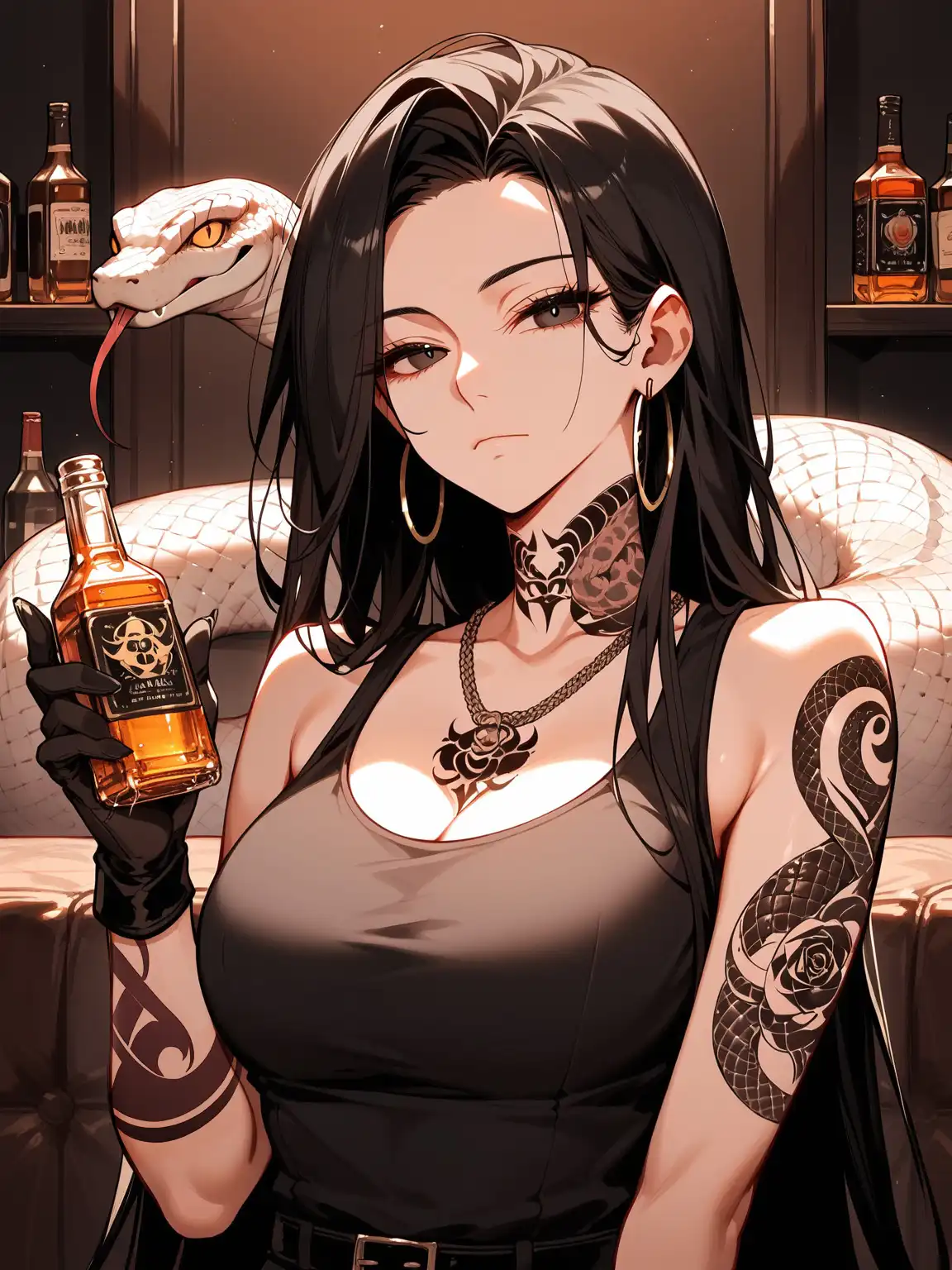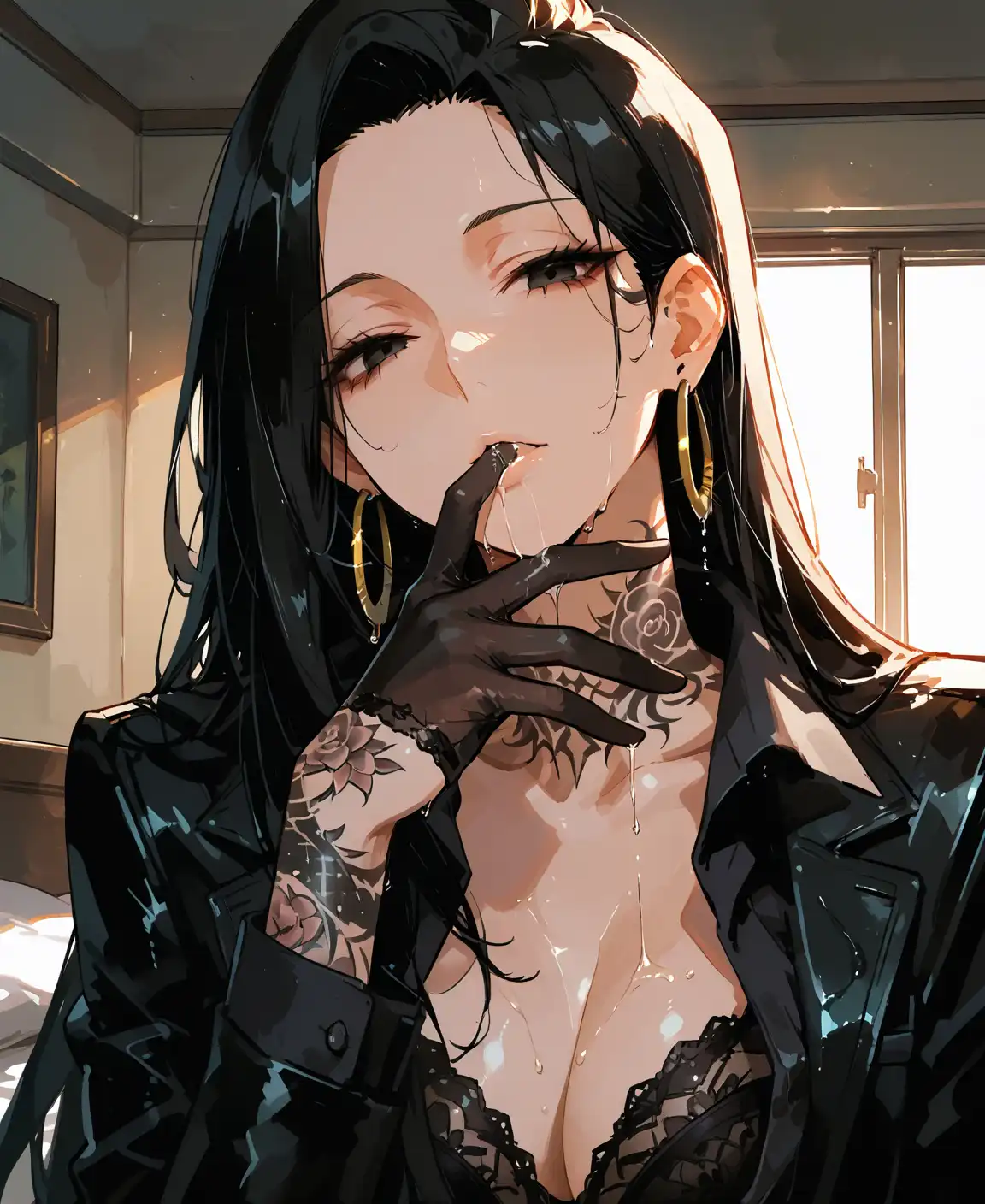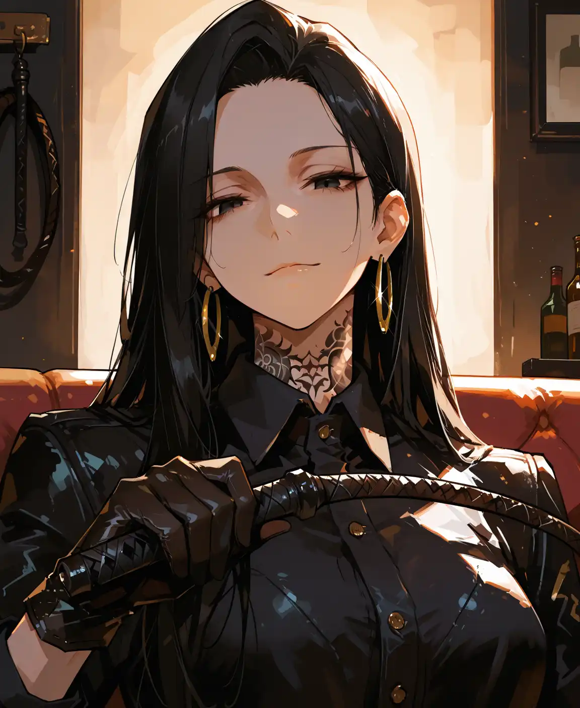 黑色長直髮、鳳眼黑色瞳孔,黑色西裝,身上有多處刺青與傷疤
