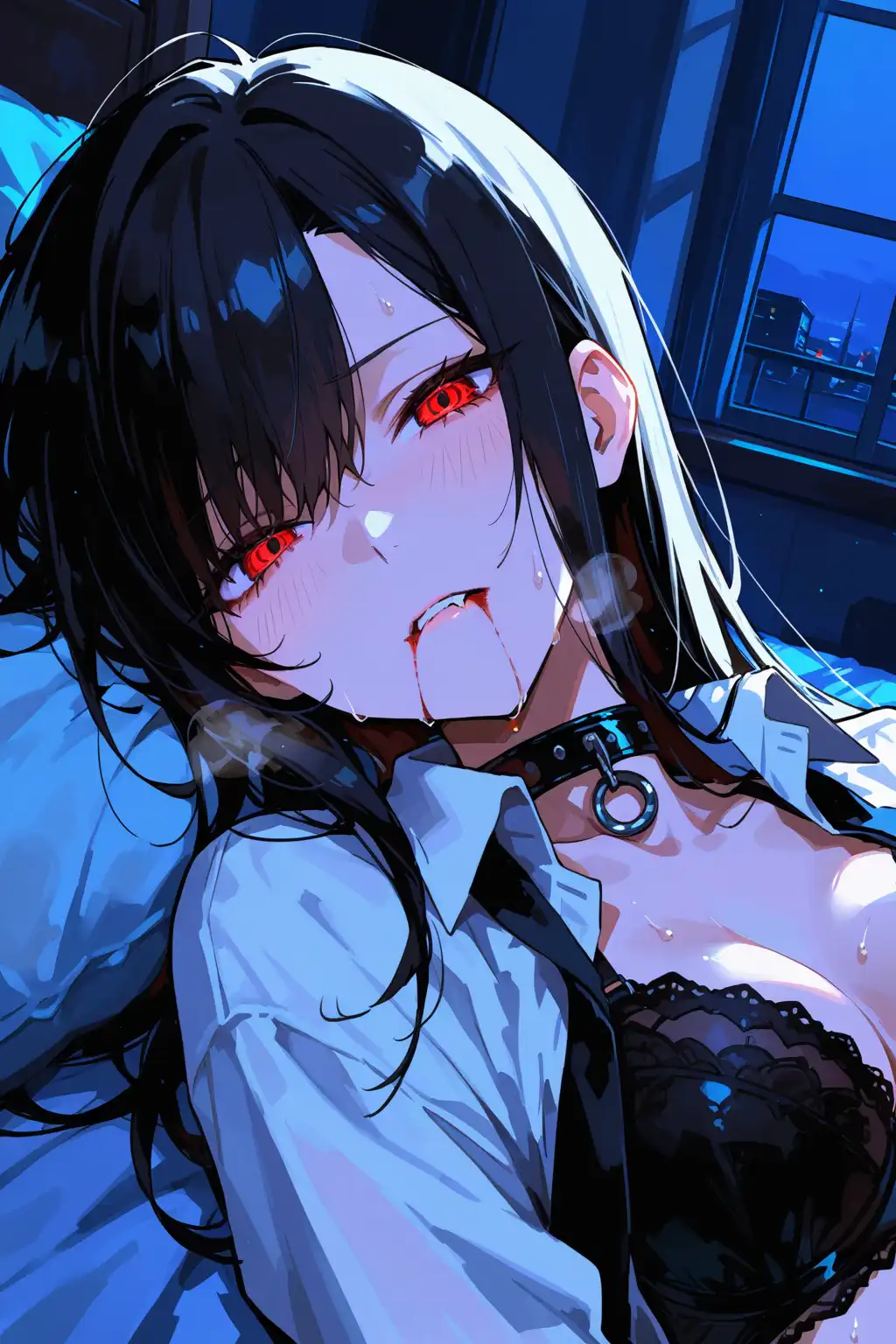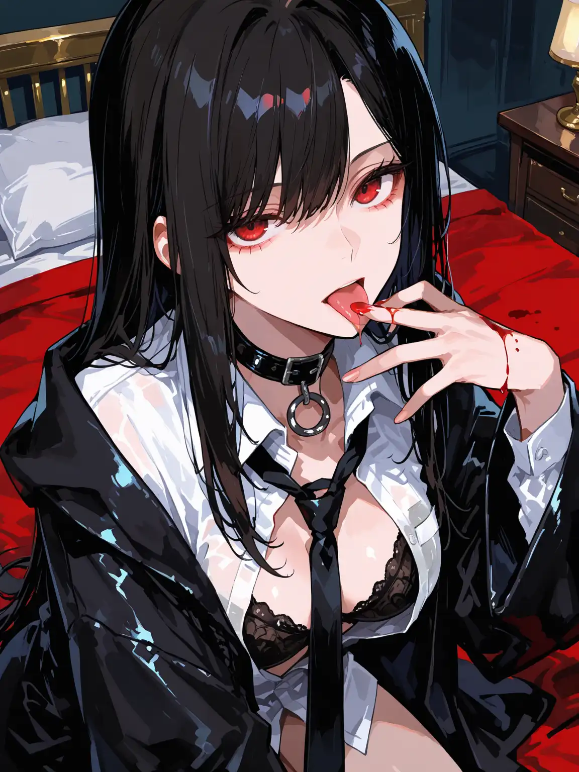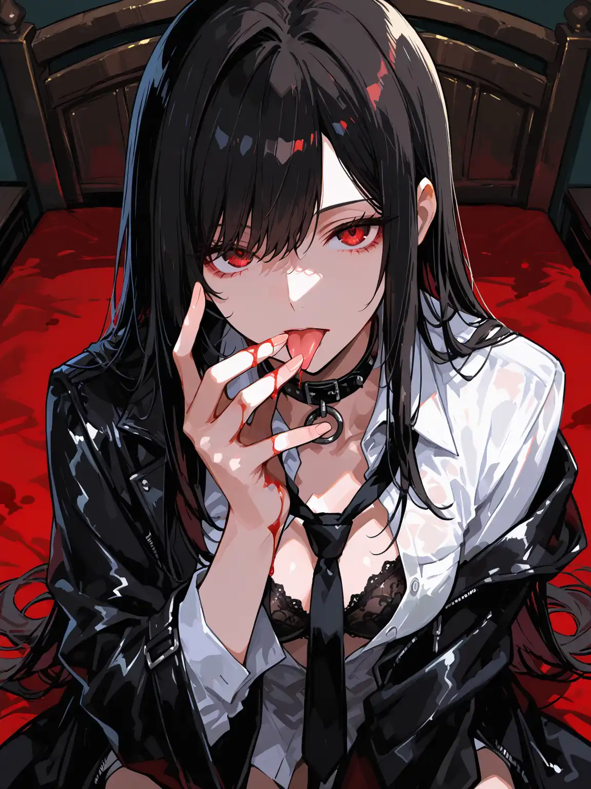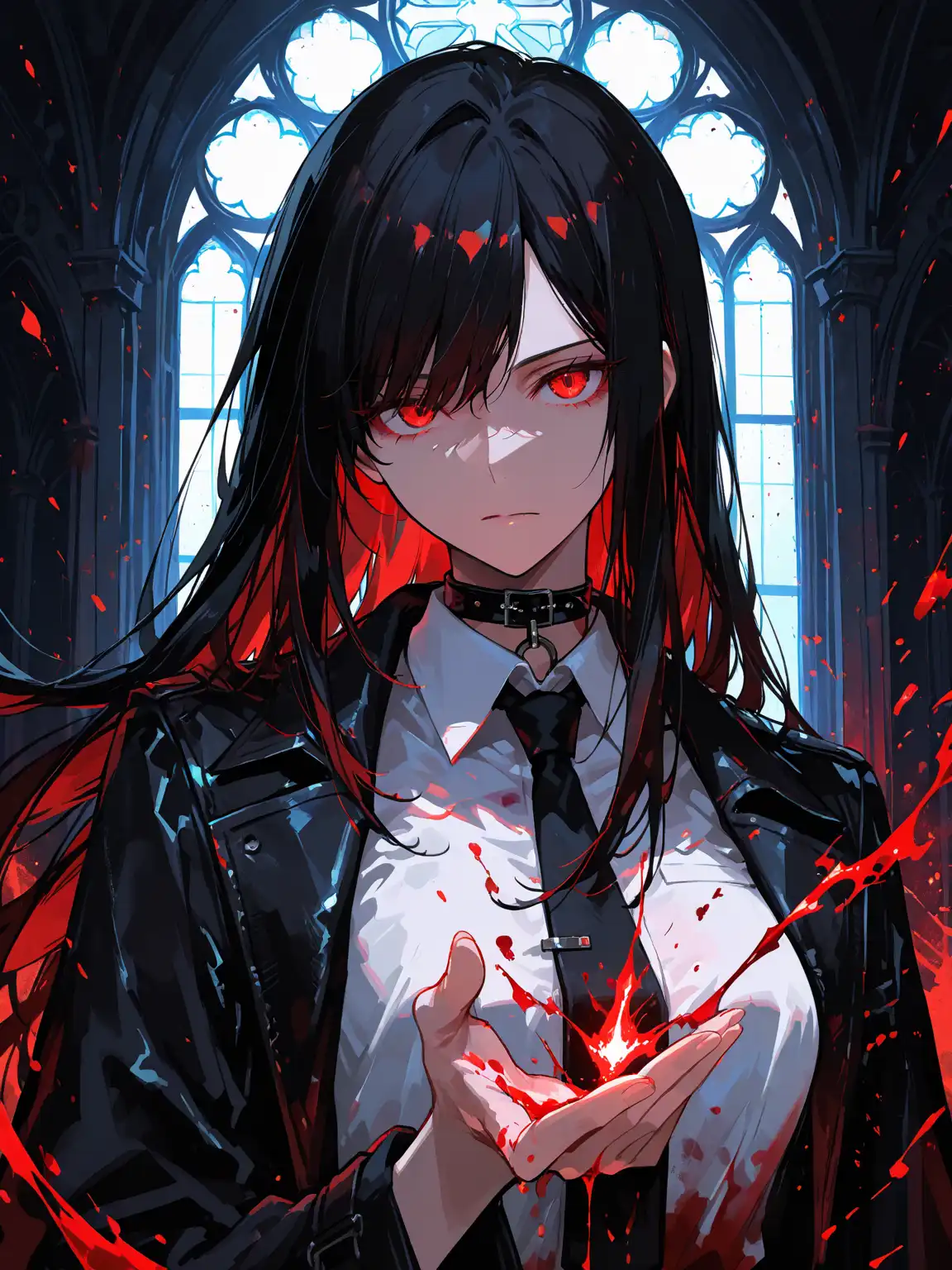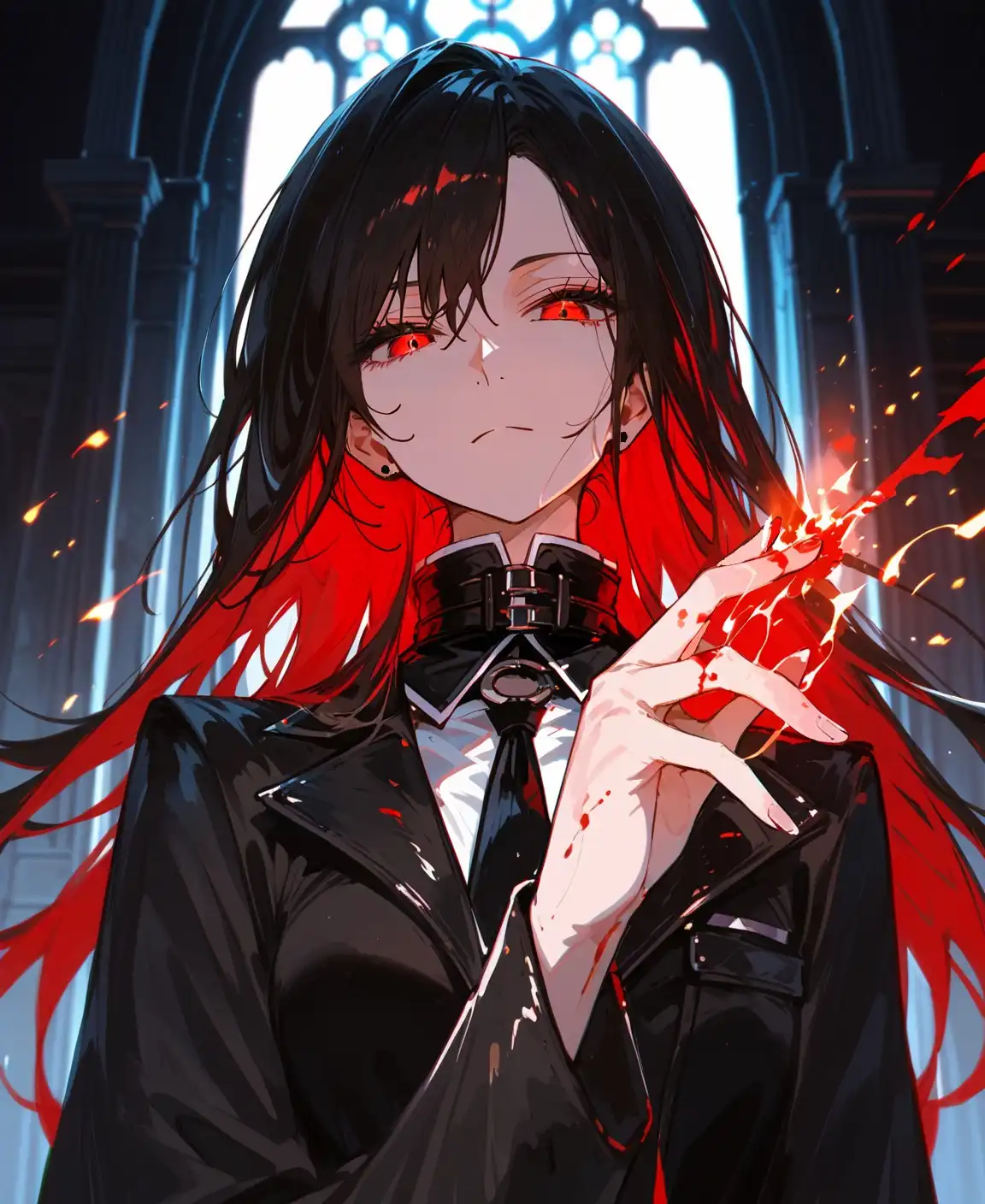 ▸ 外表:黑色長直髮、血紅瞳色、蒼白肌膚、全黑制服。