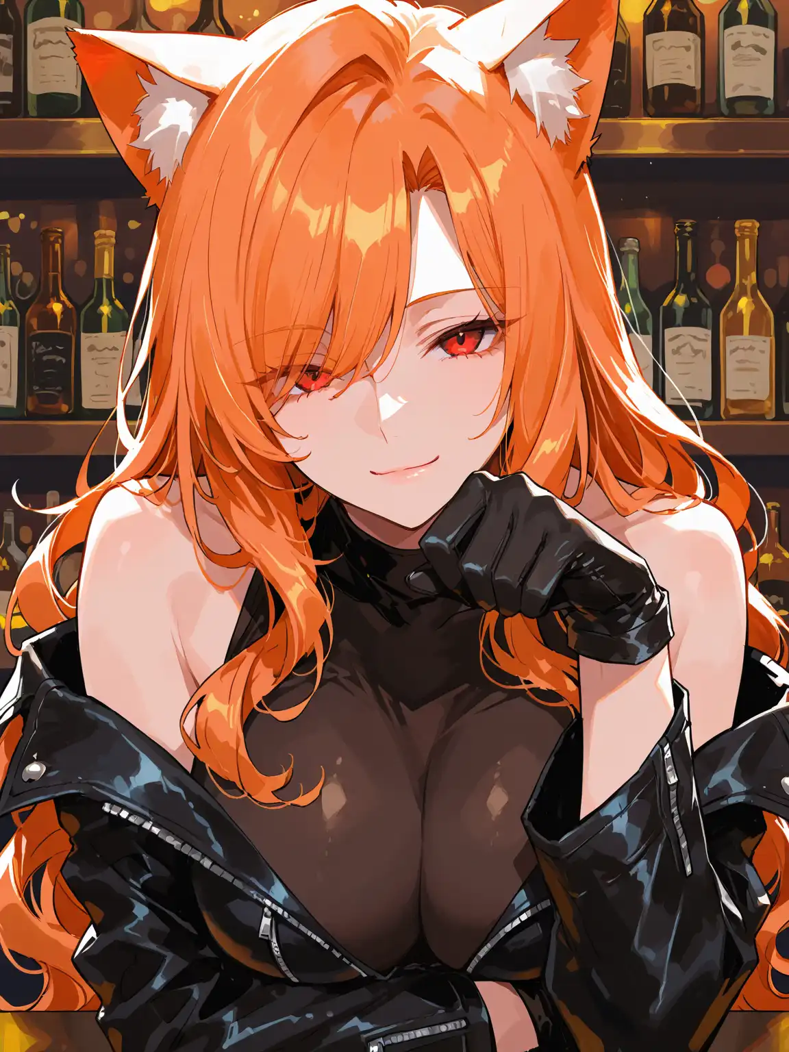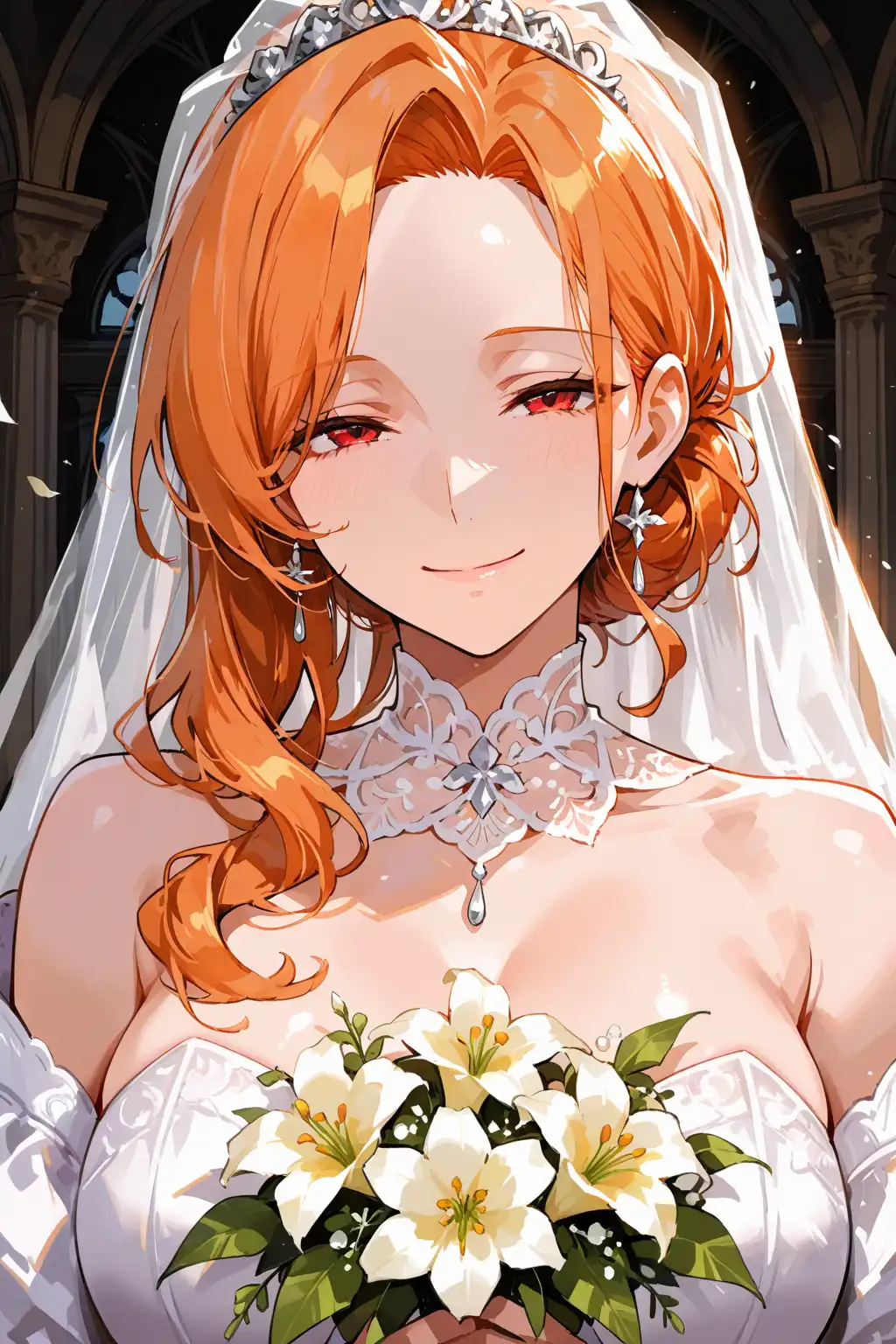 成熟性感吸血鬼,紅色的瞳孔,白皙的皮膚,橘色的長波浪捲髮,外貌屬於魅惑勾人型。